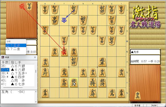現在の激指の読み筋では B△7二金 となっていました。 形勢判断 互角