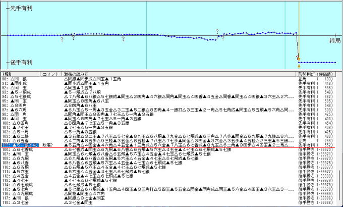 次の本譜 105手目▲5一銀不成 での激指のコメントは 敗着 になっています。